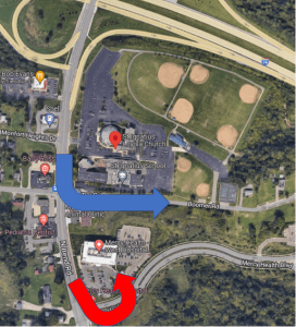 Overflow parking at Mercy Hospital’s medical building (RED Arrow, corner of North Bend Road and Mercy Health Blvd).